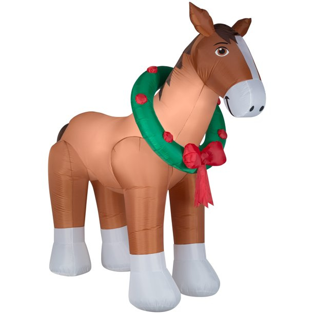 New for the Holidays Collection......Clydesdale Horse with Christmas Wreath Airblown Inflatable. Elegant looking Clydesdale Horse donned with a Christmas Wreath. This Gemmy Christmas Inflatables stands 9 feet high.