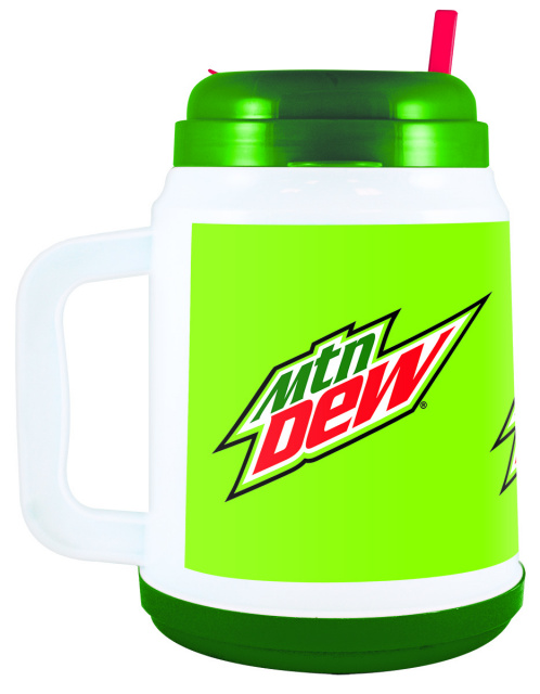 64 oz Mountain Dew Drink Tanker. if you are serving Mountain Dew Pepsi products...This Mt Dew Tanker is for you. You can supersize your Drink Sales with these product containers. Great Family Size Container.